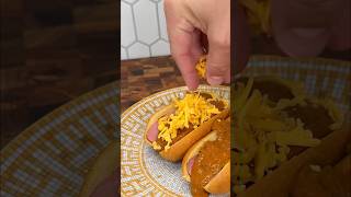 Indulge in an American classic with this quick and delicious chili cheese corn dog hack. Combining the crispy satisfaction of air-fried corn dogs with the savory goodness of chili and cheese, this recipe transforms a simple snack into a mouthwatering treat. Ideal for a casual meal or a fun snack, this dish is sure to please everyone.