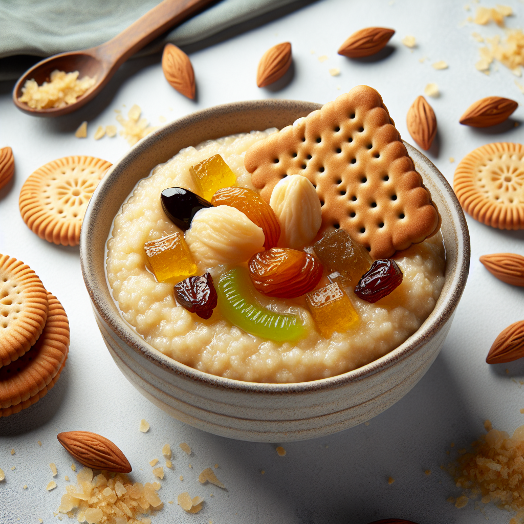 Biscuit & Suji Ka Halwa is a delightful fusion dessert that marries the rich flavors of semolina (suji) with the comforting taste of crushed biscuits. This Indian sweet dish is perfect for festive occasions or simply to satisfy your sweet tooth. The caramelized, nutty aroma of roasted suji combined with crunchy biscuits makes for an irresistible treat.