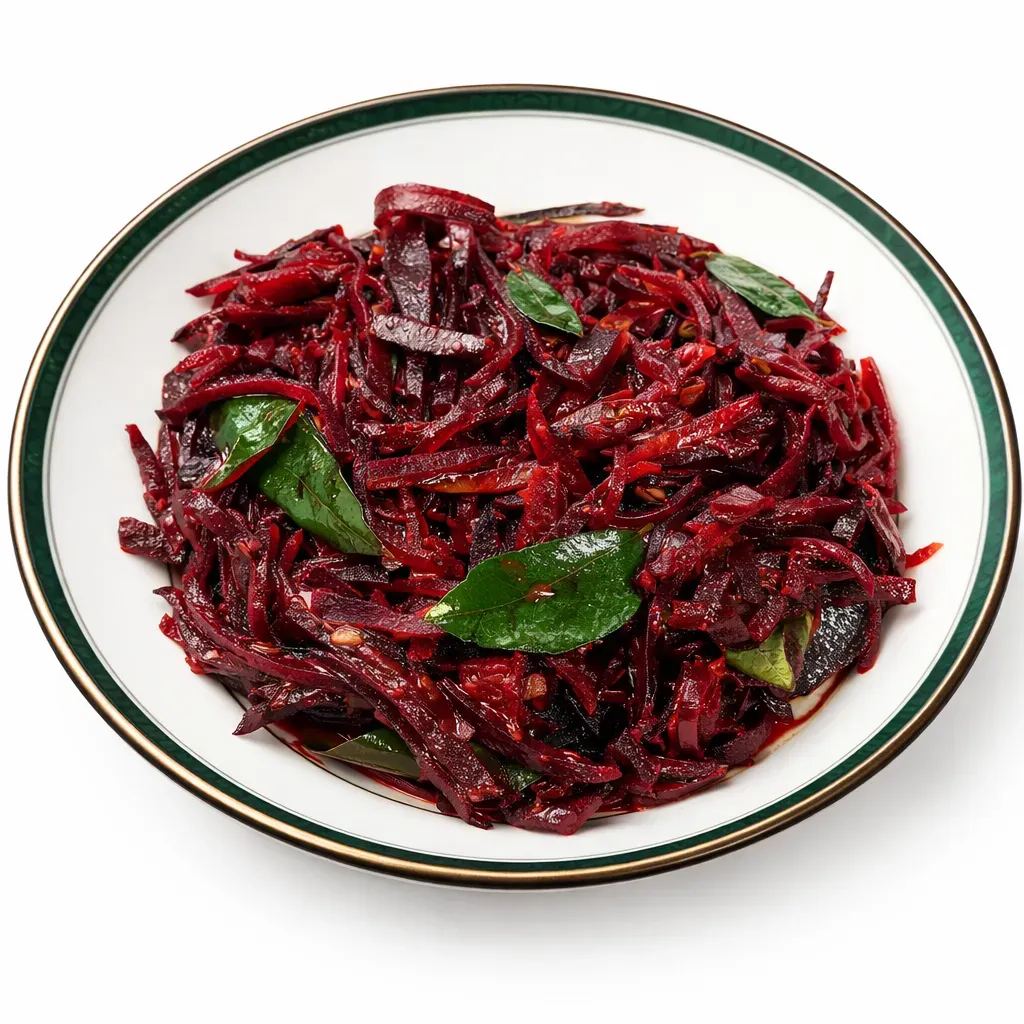 A colorful and aromatic vegetarian dish featuring earthy beetroots cooked with fragrant spices and creamy coconut milk, inspired by Sri Lankan cuisine.