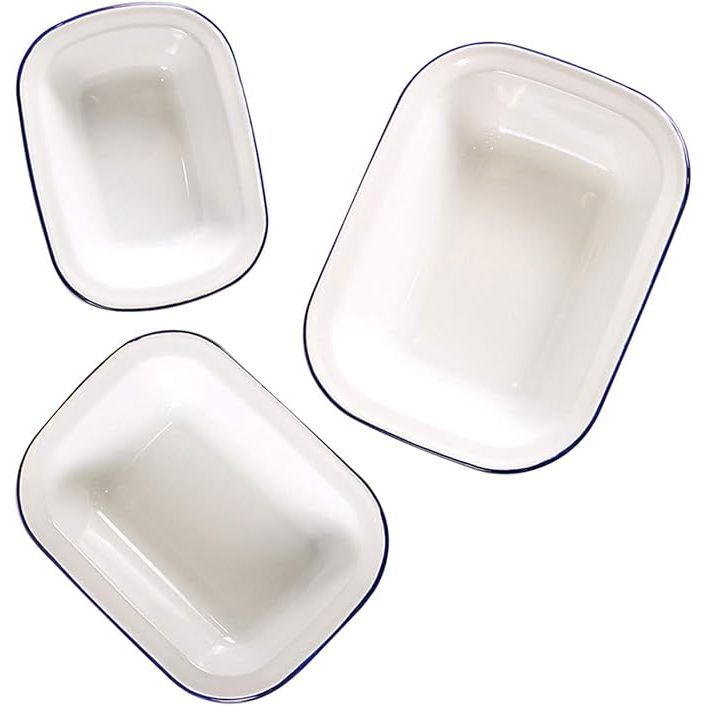 Enamelware Roasting Pan 3 Pack, White and Blue Rim