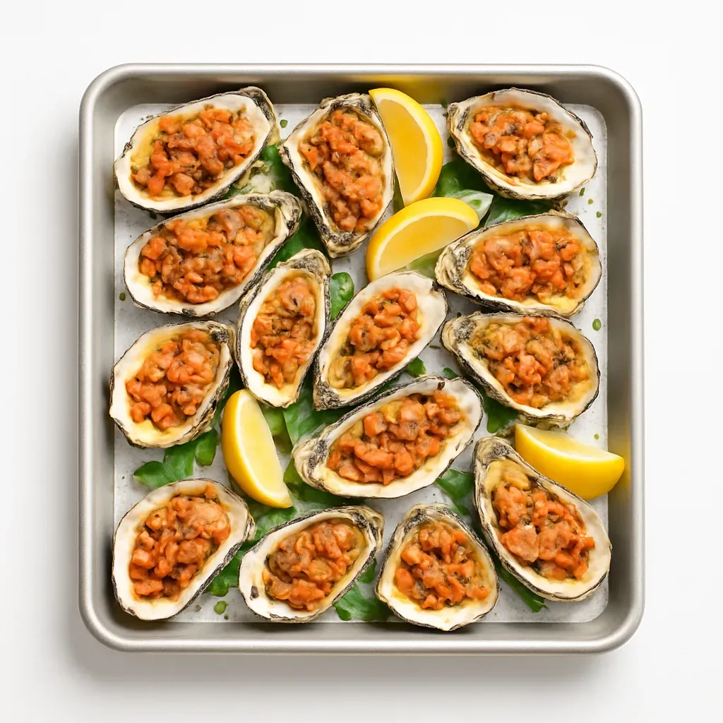- Spoon the topping mixture generously over each oyster.