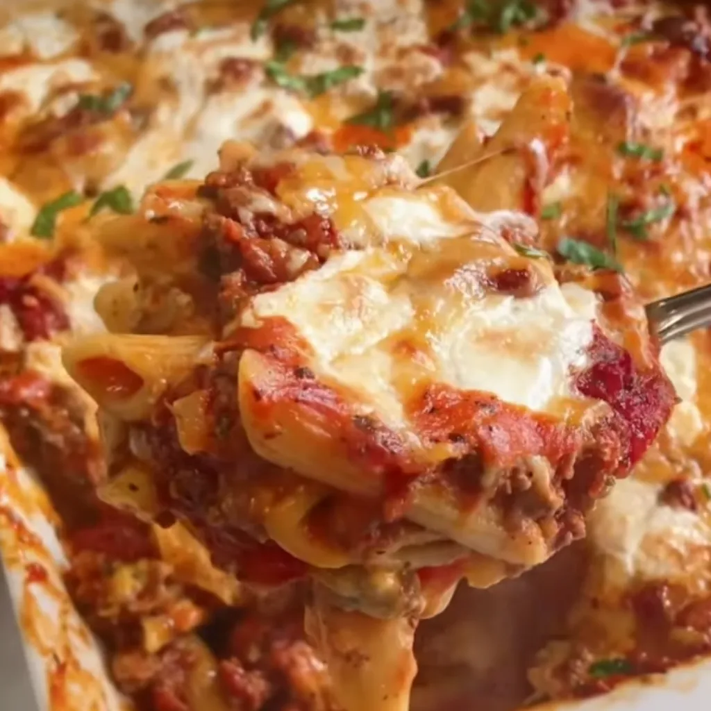 Dive into the warmth of Italian-American cuisine with this Cheesy Baked Pasta Delight. This comforting dish combines a savory meat sauce, creamy cheese, and perfectly cooked pasta to create a meal that’s both familiar and fulfilling. Perfect for family dinners or gatherings, this dish brings an old-world charm with a modern twist of cheddar.