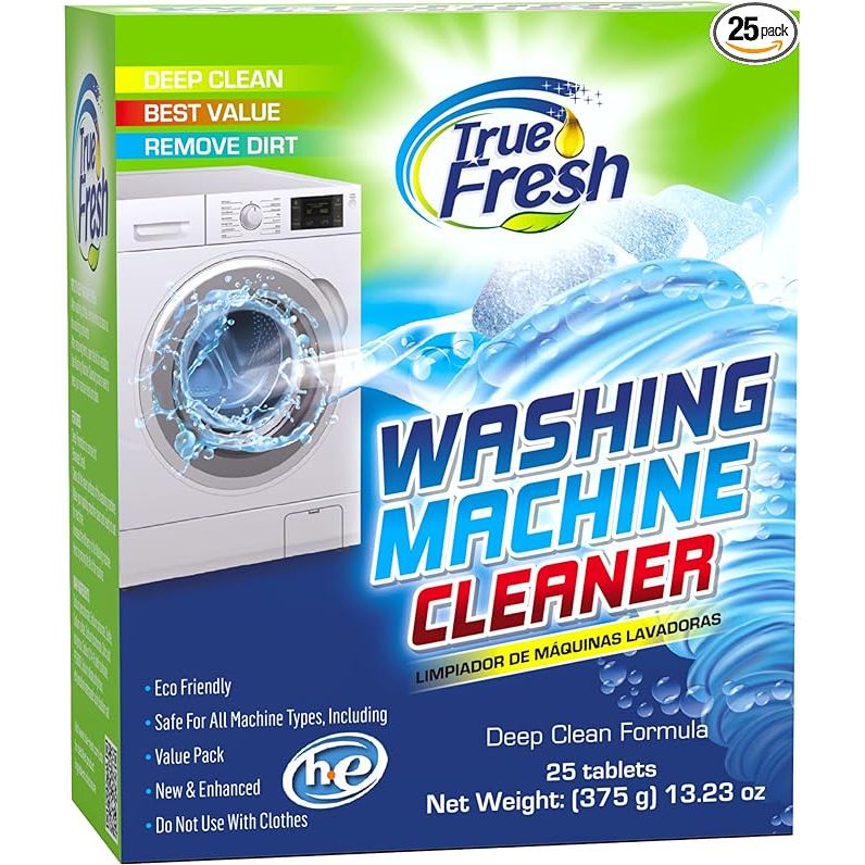 True Fresh Washing Machine Cleaner Tablets - 25-Pack Cleaner for Top Load, Front Load & HE Machines - Tub, Seal, and Drum Deep Clean, Descaler & Septic-Safe