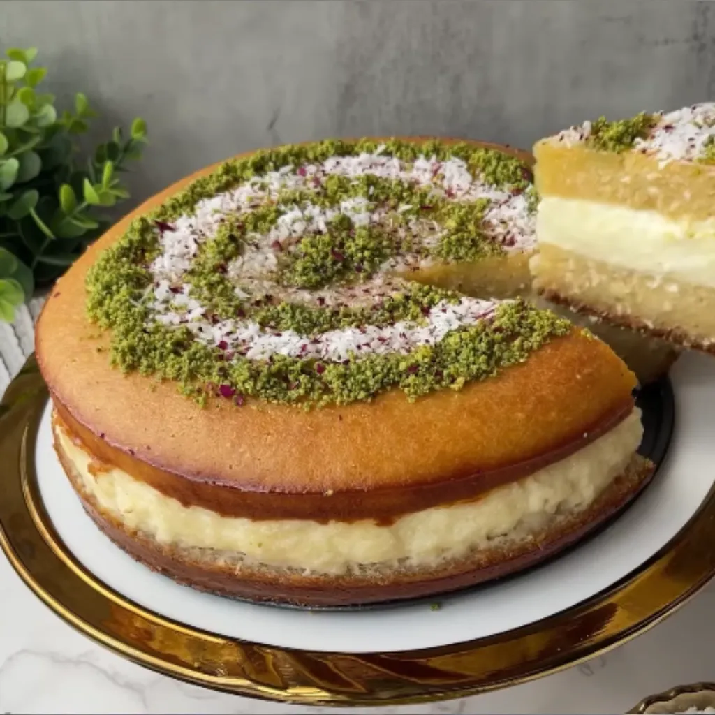 Basbousa with a heavenly Ashta filling is a classic Middle Eastern dessert that's perfect for any occasion. This delightful semolina cake is soaked in aromatic simple syrup and filled with luscious cream, offering a beautifully layered treat that will impress your guests and family alike.