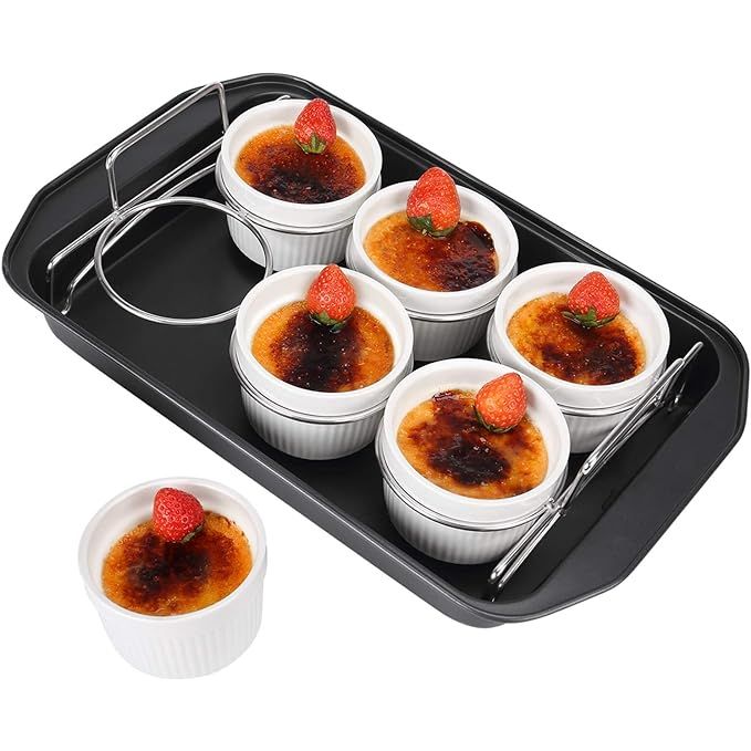6-Piece Ceramic Ramekin Set with Lifting Rack and Baking Pan