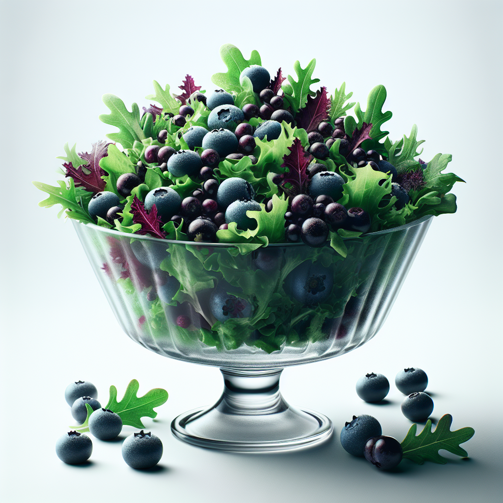 Saskatoon Berry Salad marries the sweet, nutty flavor of Saskatoon berries with the crisp freshness of mixed greens. It's a refreshing salad that embraces the essence of summer with a blend of various greens such as spinach, arugula, and romaine, tossed with a handful of juicy Saskatoon berries. A simple dressing made from olive oil, balsamic vinegar, and a touch of honey or maple syrup brings out the berries' natural sweetness while adding a zesty tang. Topped with crunchy slivered almonds and creamy goat cheese, this salad is as pleasing to the palate as it is to the eye. Perfect for a light lunch, a side dish at a barbecue, or as a starter for a fancy dinner, the Saskatoon Berry Salad is versatile and full of flavor. Description by ChatGPT.