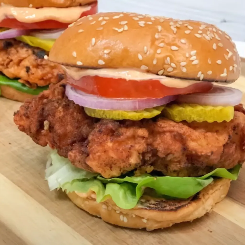 - Spread the sauce on your choice of buns, place the crispy chicken on top, and add your favorite toppings (like pickles, lettuce, or tomato).