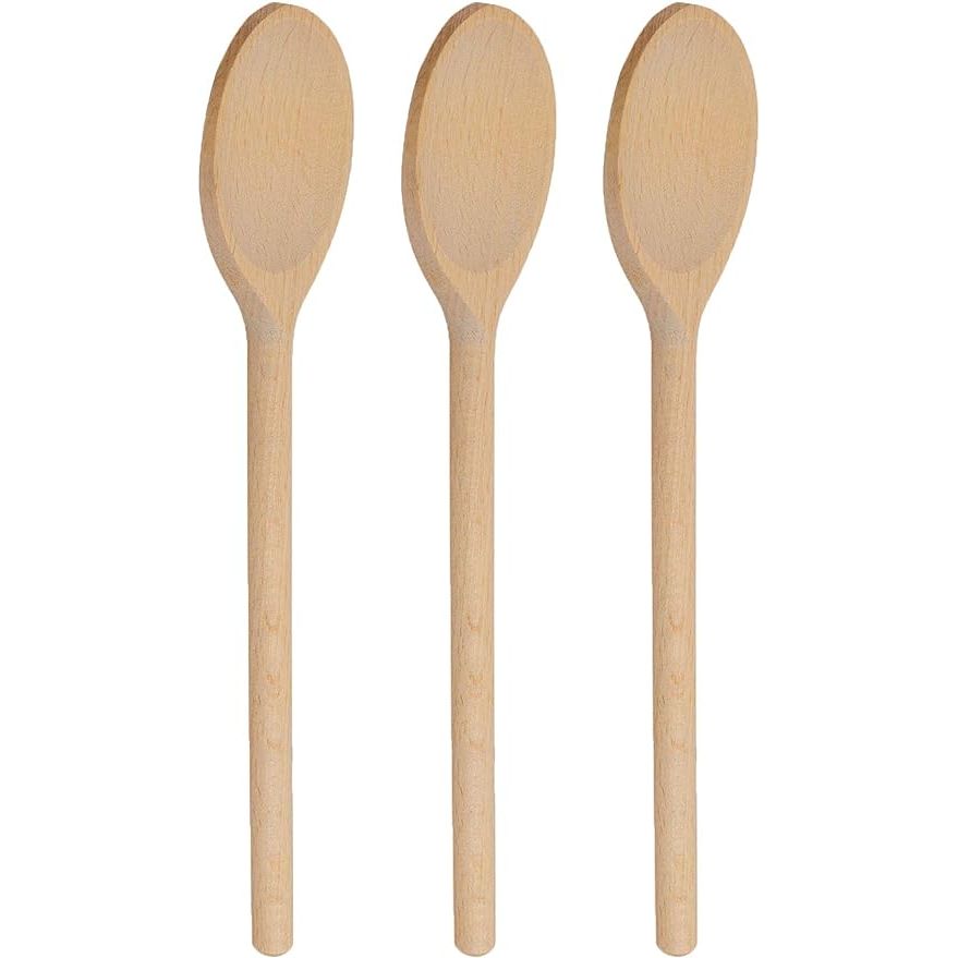Set of 3 Oval Wooden Cooking Spoons - 12 Inch Length - Made from Beechwood
