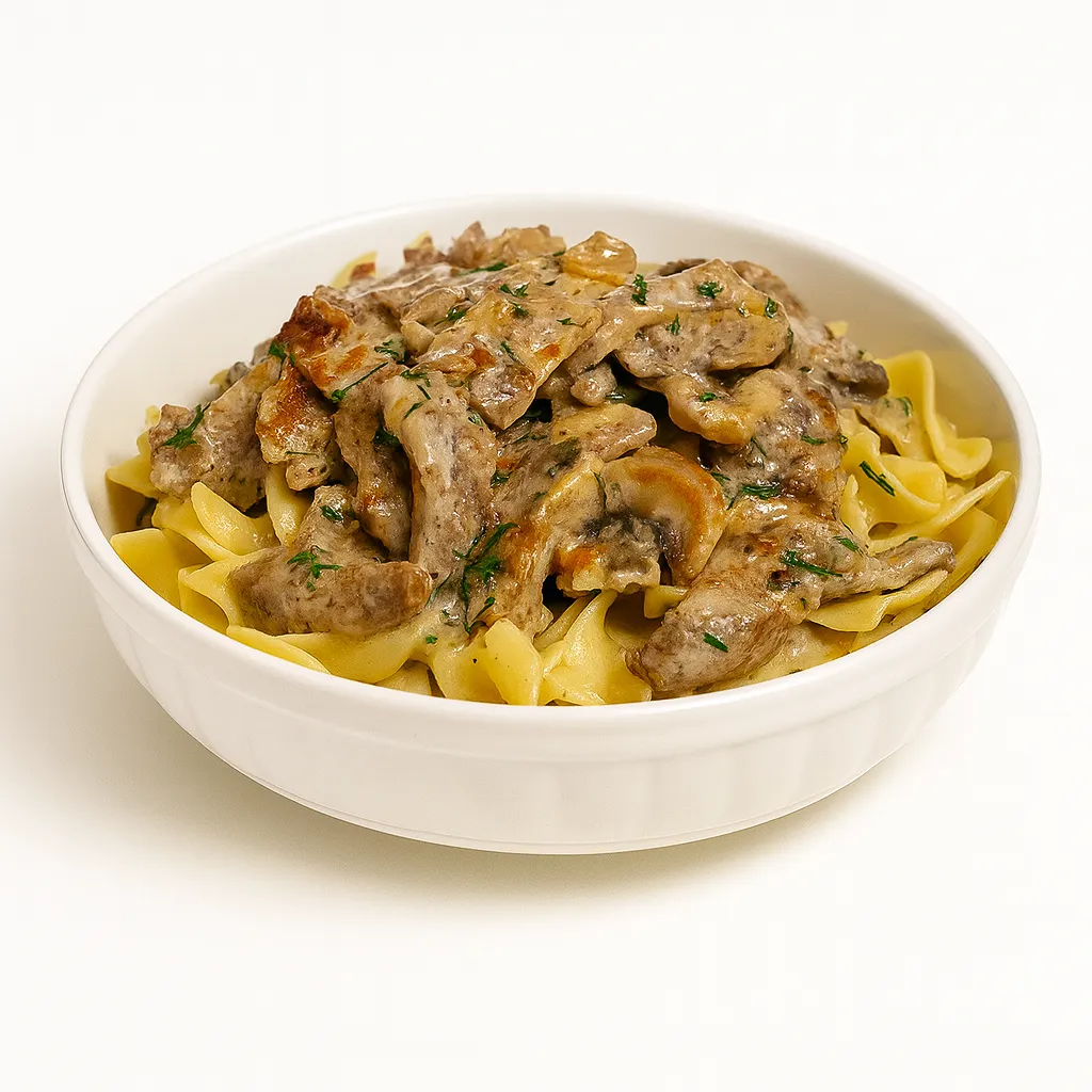 9. Serve the beef stroganoff over cooked egg noodles, garnished with a sprinkle of paprika and fresh dill, if desired.