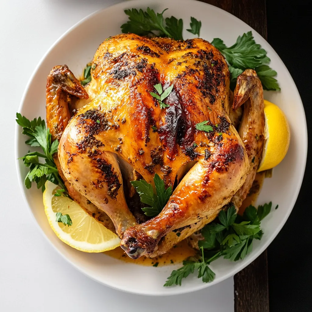 9. While the chicken is roasting, baste it frequently, about every 15 minutes, with the melted butter. If desired, you can let the remaining butter brown slightly on the stove for a nuttier flavor.