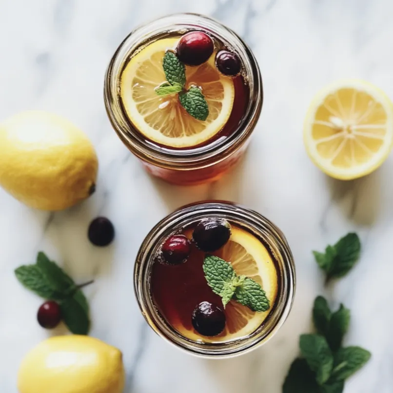 New England Iced Tea is an invigorating beverage perfect for warm days and gatherings. This unique drink takes inspiration from classic Southern sweet tea but introduces a Northern twist with hints of cranberry and maple syrup. The recipe entails brewing a strong black tea, sweetening it with pure maple syrup, and adding a splash of cranberry juice for a tart contrast. Lemon slices and a handful of fresh mint leaves are often incorporated, which contribute additional layers of freshness and zesty flavor. The tea is then chilled and served over ice, making for an ultimately refreshing and thirst-quenching drink that can be enjoyed throughout the day. Description by ChatGPT.