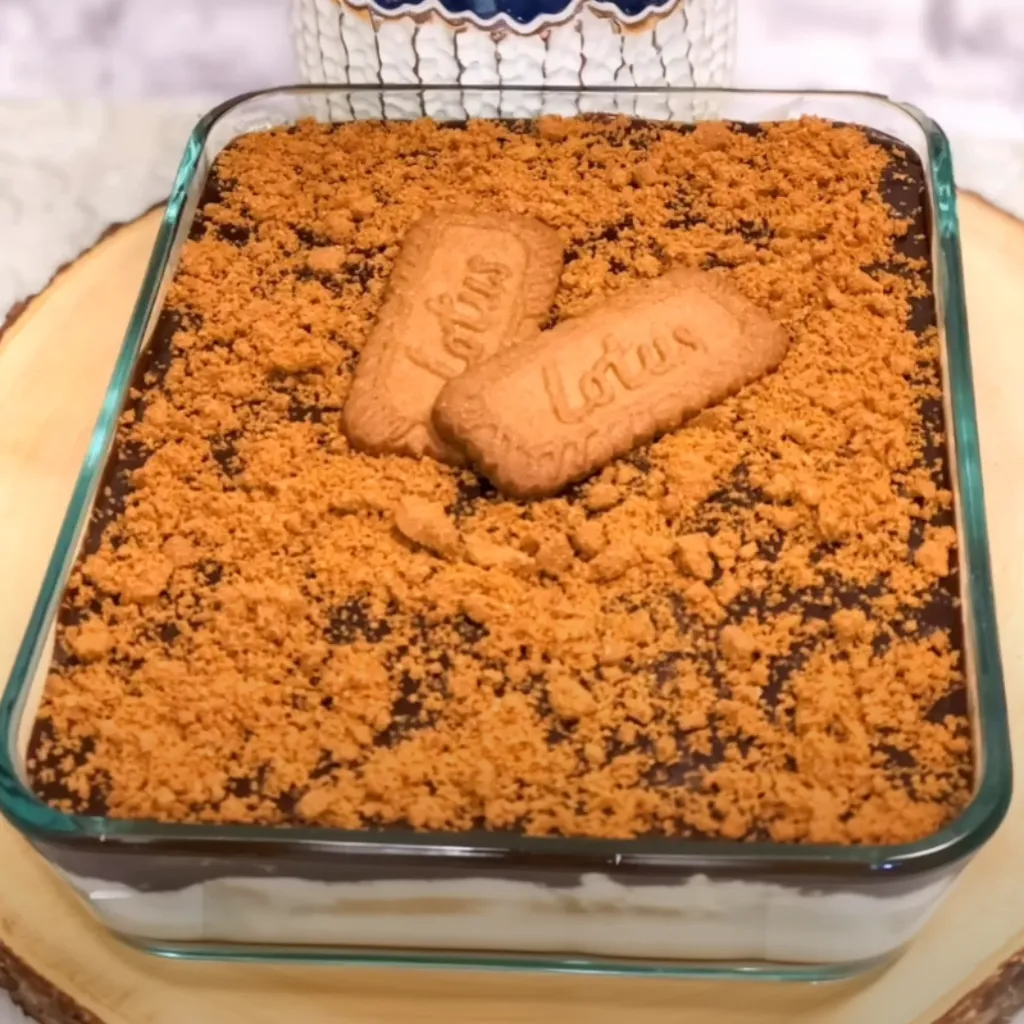 - Crush some Lotus cookies and sprinkle them over the chocolate layer for added texture and flavor.