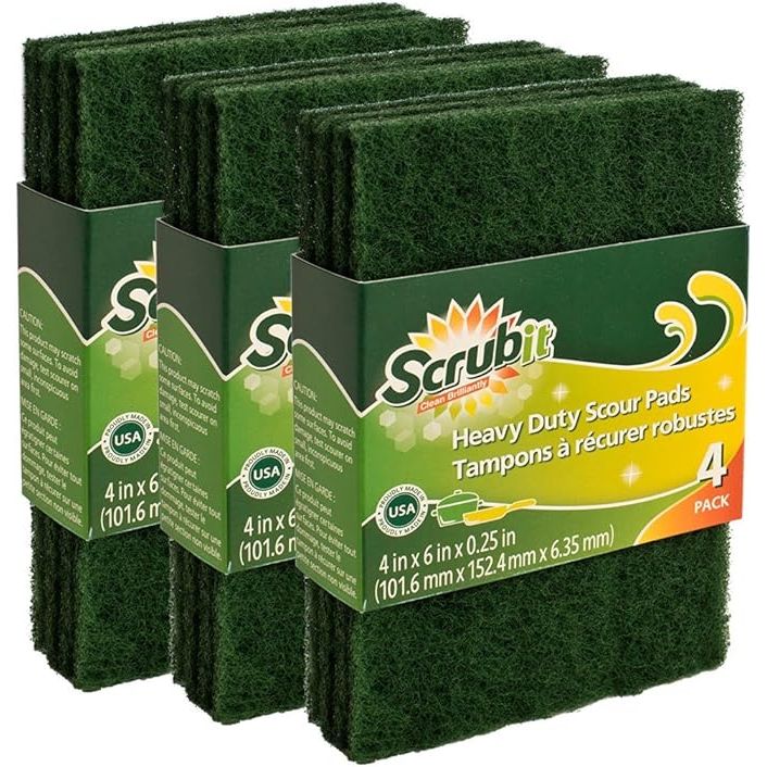 SCRUBIT Heavy Duty Non-Scratch Scouring Pads - Green Reusable Cleaning Scrubbers, 12 Pack