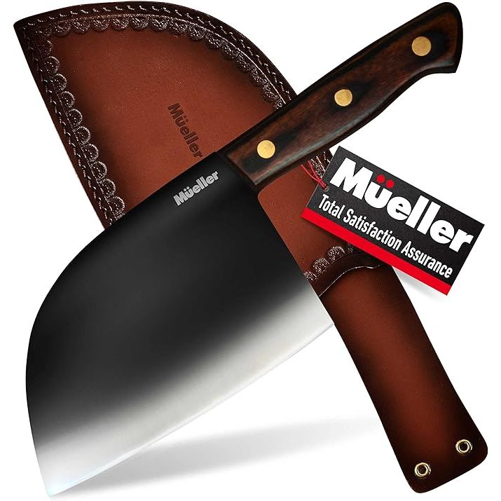 Designed for both professional chefs and home cooks, this versatile knife is a must-have in any kitchen. The included leather sheath ensures safe storage and easy transport, making it ideal for on-the-go cooking adventures. Whether you're slicing meats or chopping vegetables, the Mueller UltraForged Professional Meat Cleaver Knife is the perfect tool for achieving precise and consistent results.