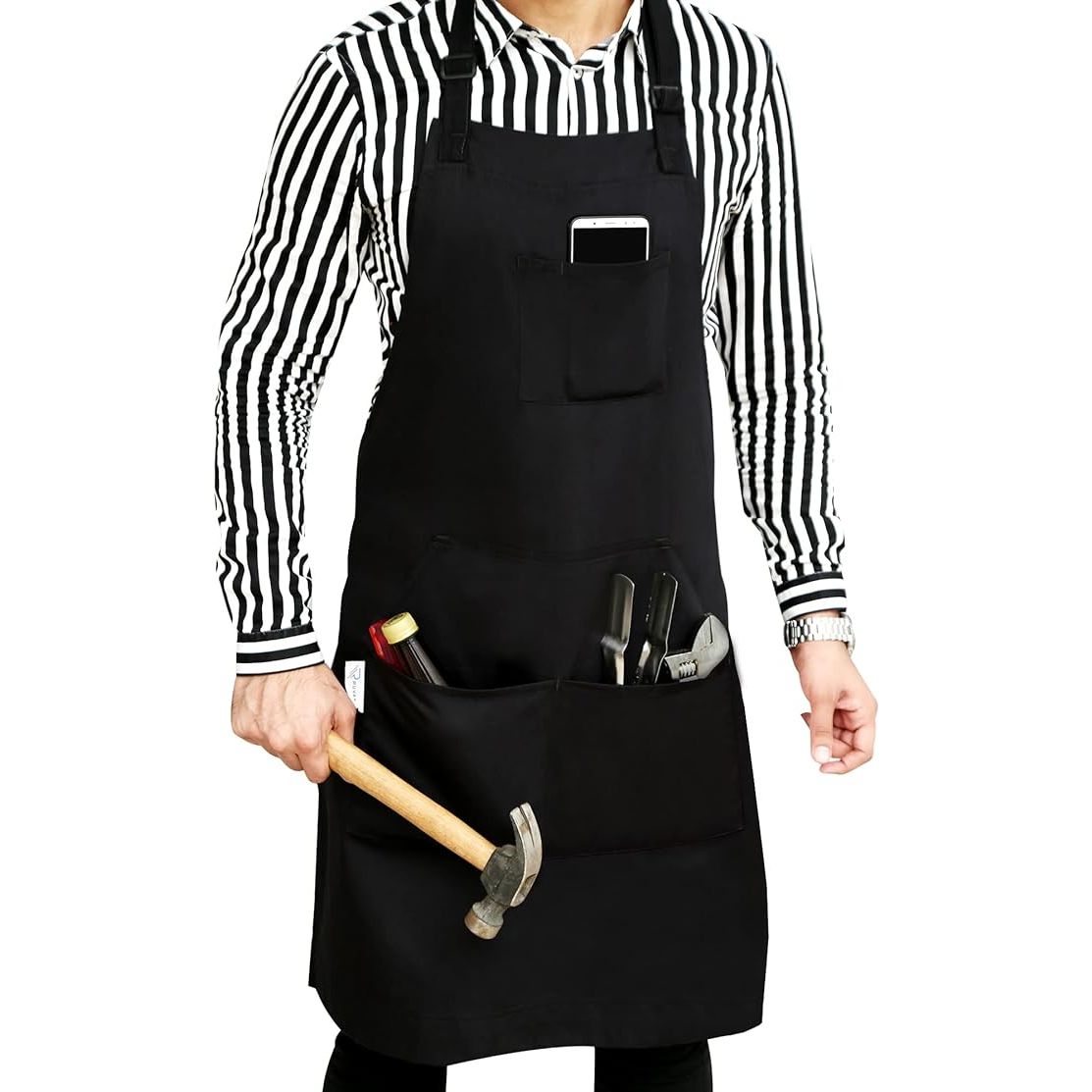 Never miss a beat with convenience at your fingertips. This RUVANTI apron comes equipped with ample pockets, providing instant access to your essential tools and gadgets. The user-centric design features an adjustable neck strap and waist ties, promising a custom, snug fit for uninterrupted comfort throughout extended periods of wear. Maintenance is a breeze, thanks to the machine-washable fabric that retains its integrity wash after wash.