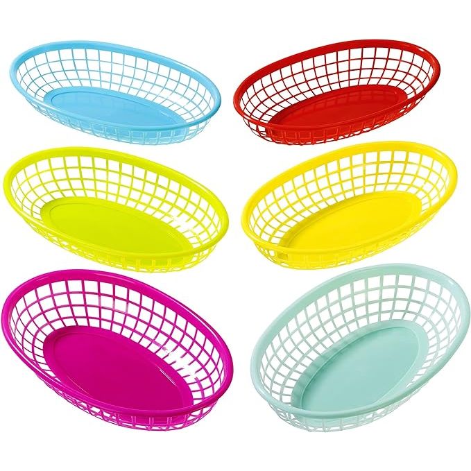 Measuring at 9.5 x 6 x 2.5 inches, these baskets provide ample space for all your favorite snacks and sandwiches. Lightweight and easy to carry, they are ideal for on-the-go dining adventures. Plus, they are reusable and easy to clean, making them a practical and eco-friendly choice. Whether you're hosting a birthday party or a backyard barbecue, these colorful baskets will add a stylish touch to your table setting while serving your guests in style.