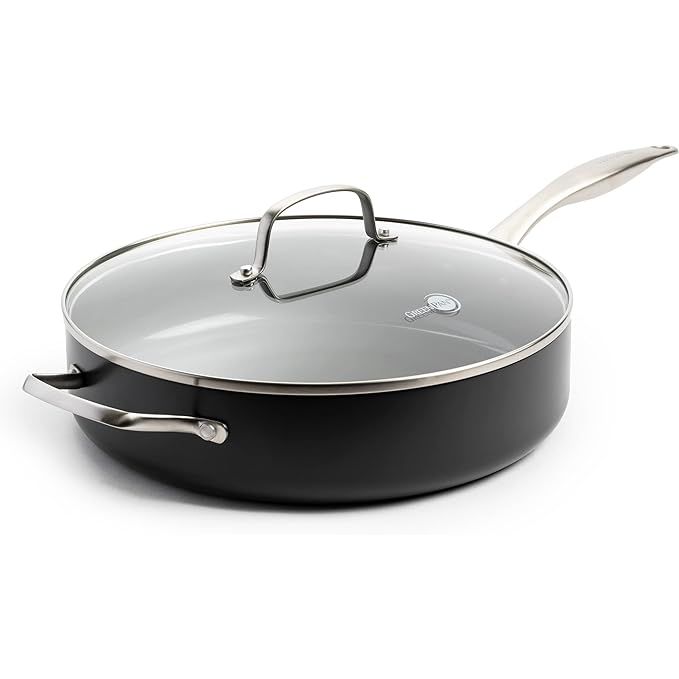 Add the GreenPan Canterbury 5QT Saute Pan to your cookware collection for an all-encompassing cooking experience. Its sturdy construction, safe nonstick coating, and easy-to-clean features make it a must-have for any kitchen. Upgrade your cooking game with this top-of-the-line saute pan. Description by ChatGPT.
