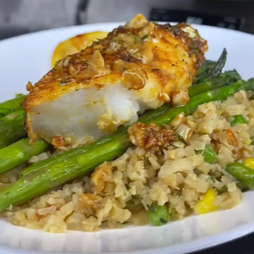 Elevate your clean eating with this vibrant and nutrient-packed meal featuring Lemon Garlic Cod, Cilantro Cauliflower Rice, and crisp Asparagus. Bursting with flavors and rich in omega-three fatty acids, vitamin D, and more, this balanced dish proves that healthy food doesn't have to be boring!