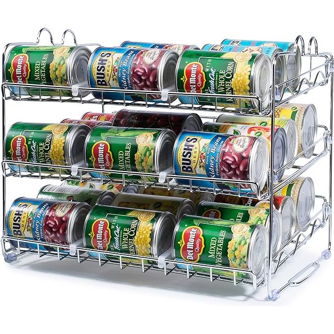 Constructed with durability in mind, the Che'mar Stackable Can Rack Organizer is designed to withstand everyday use. Say goodbye to cluttered shelves and inefficient storage methods by investing in this convenient organizer. Make the most of your kitchen space and keep your canned goods easily accessible with this practical solution. Say hello to a tidy pantry with the help of this space-saving organizer.