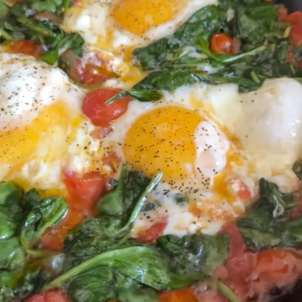 Shakshuka is a beloved Middle Eastern dish known for its vibrant flavors and comforting warmth. This version adds a nutritious twist with the inclusion of fresh spinach. Perfect for breakfast or brunch, it's a one-skillet dish that's both simple to prepare and incredibly satisfying.