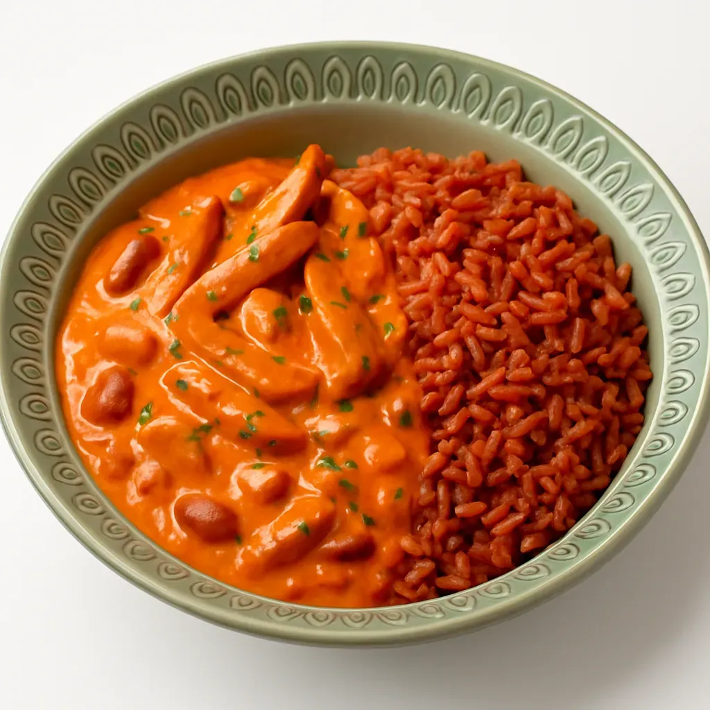Dive into a comforting bowl of Creamy Lamb Sausage and Red Chili Stew, a flavorful dish brimming with hearty European-style comfort and a chili kick. Perfect for a warm evening, serve this savory delight with a side of red rice, and garnish with fresh parsley for a vibrant finish.