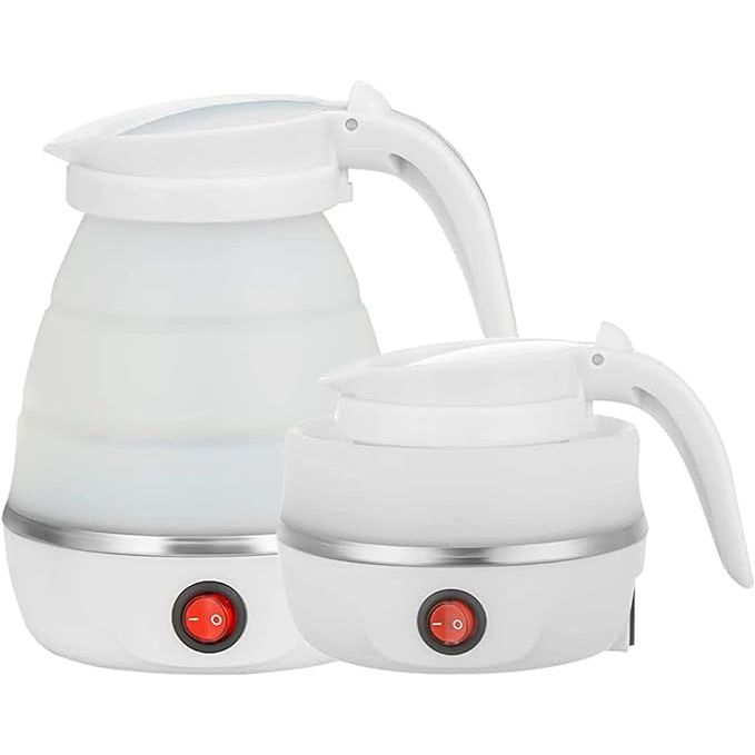Foldable Electric Travel Kettle - Portable and Convenient Silicone Collapsible Water Boiler and Tea Pot for Camping - Easy Storage with Detachable Power Cord (White)