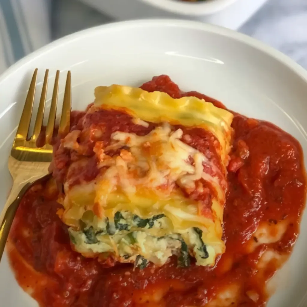 - Take one lasagna noodle, spread a generous layer of the ricotta-spinach mixture on top, then gently roll it up.