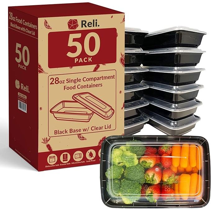 Reli 28 oz Food Storage Containers - 50 Pack | Microwave Safe | Disposable Containers | Plastic | Black