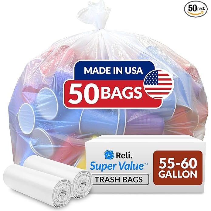 Reli. SuperValue Heavy-Duty 55-60 Gallon Clear Trash Bags - 50 Count