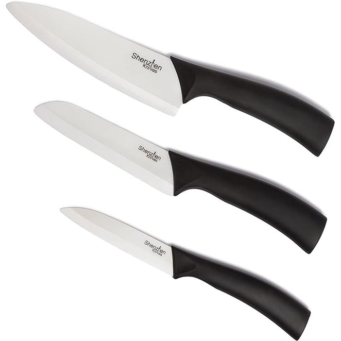 Overall, the Shenzhen Knives 3-Piece Ceramic Knife Set is a practical and stylish addition to any kitchen. Experience precision and efficiency when preparing various types of food with these sharp and durable ceramic blades. Upgrade your kitchen with this set and enjoy the benefits of high-quality knives that are easy to maintain and use. Description by ChatGPT.