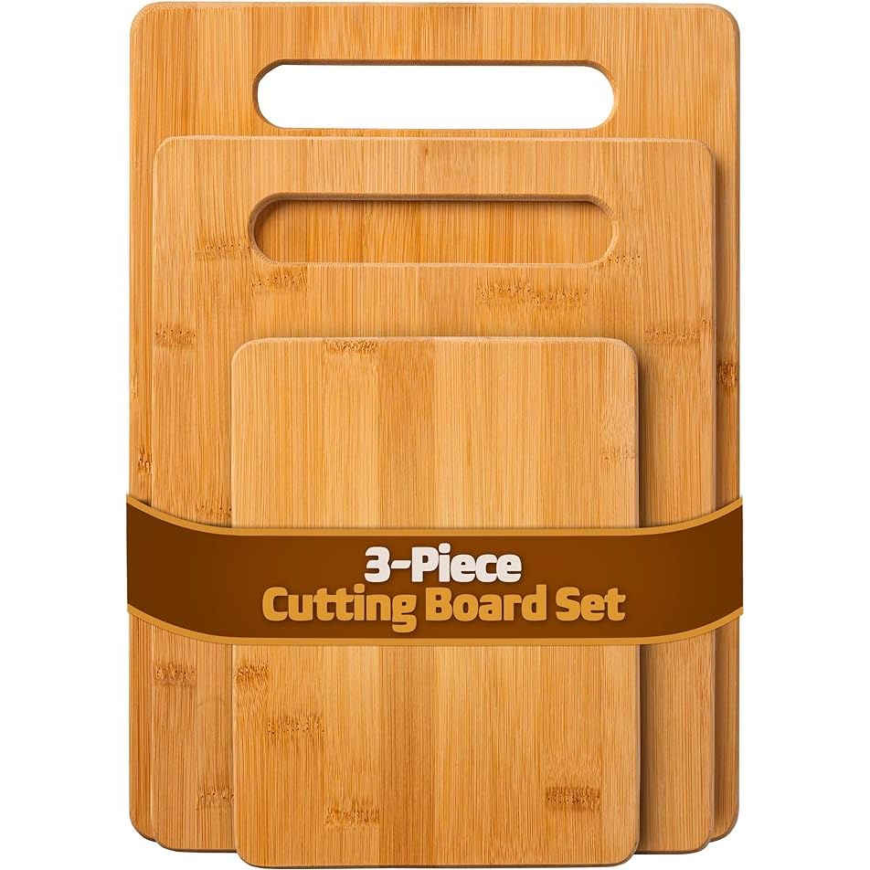 This set features three different-sized cutting boards to cater to a range of culinary tasks and can be conveniently stacked for compact storage. Bamboo is naturally antibacterial and water-resistant, ensuring a hygienic food prep environment. Easy to clean and maintain, simply hand wash the boards with warm, soapy water and let them air dry for long-lasting use.