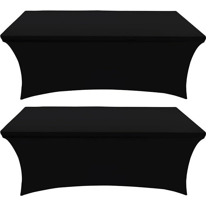 Utopia Kitchen Spandex Tablecloth 2 Pack [6FT, Black] Tight, Fitted, Washable and Wrinkle Resistant Stretch Rectangular Patio Table Cover for Event, Wedding, Banquet & Parties [72Lx30Wx30H Inch]