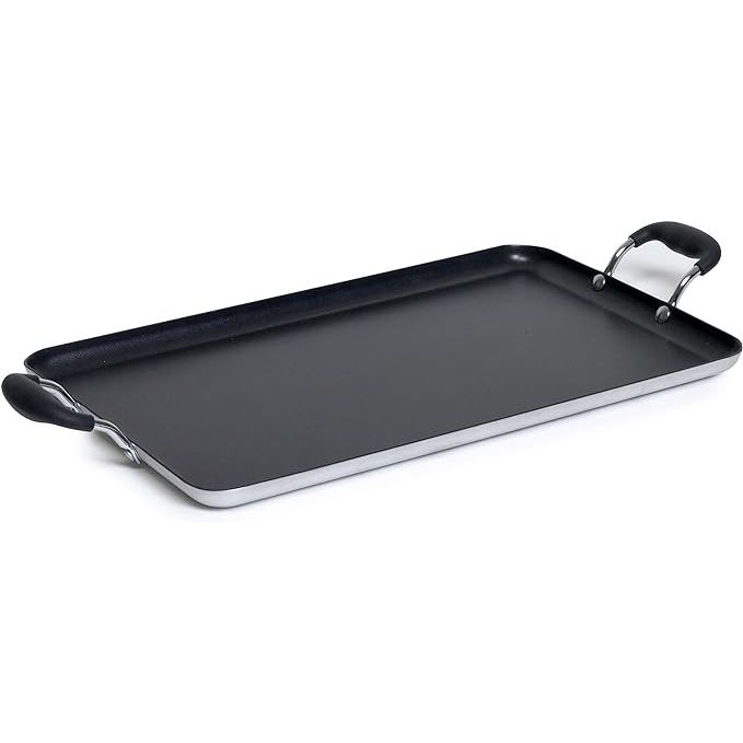 Upgrade your kitchen with the IMUSA 20x12 Double Burner Griddle with Bakelite Handles. This versatile cookware piece features two burners, allowing you to cook multiple foods simultaneously. Perfect for preparing full meals or breakfast favorites like pancakes and eggs, the durable aluminum construction ensures even heat distribution for consistent cooking results.