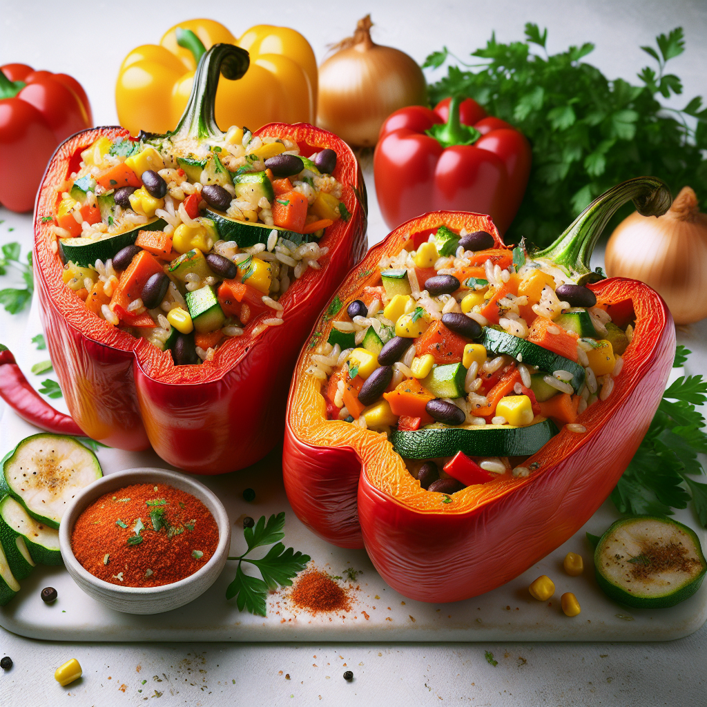 Stuffed Peppers – Rice and veggies in bell peppers.