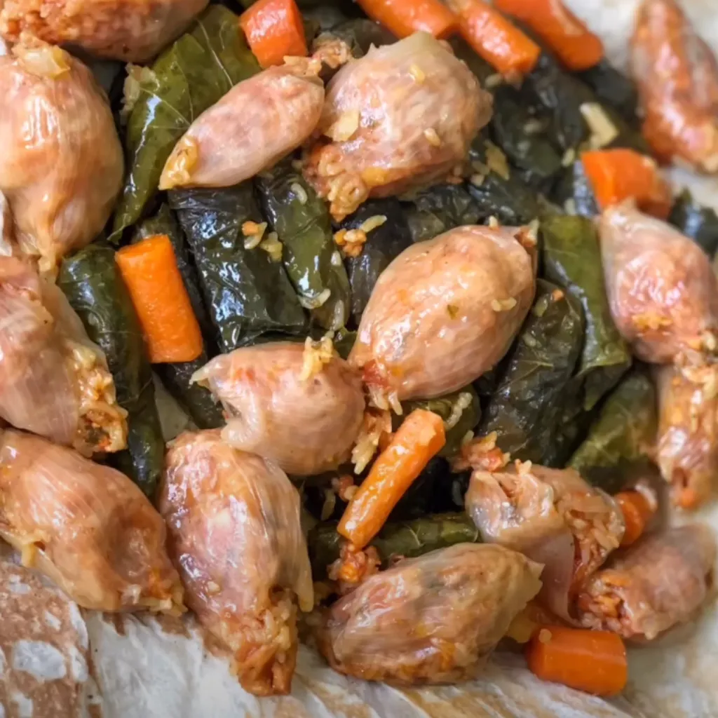 - Once cooked, carefully remove the stuffed onions and grape leaves. Serve warm and savor the delightful flavors.
