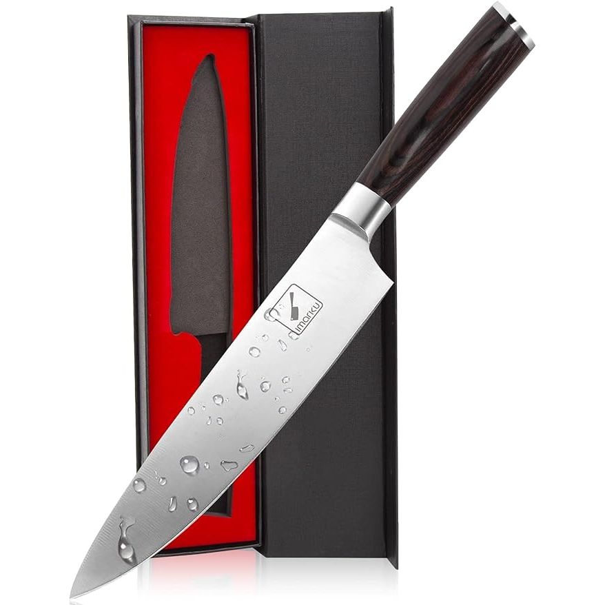 The Imarku Japanese Chef Knife is a top-of-the-line 8-inch kitchen essential crafted from high-carbon stainless steel. Its HC steel blade ensures lasting sharpness and durability for precise cutting, chopping, and slicing tasks. Not only does this chef's knife deliver exceptional functionality, but its stylish design also makes it a perfect gift for cooking enthusiasts of all kinds.