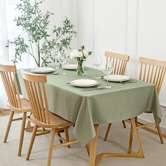 maxmill Rectangle Slubby Textured Tablecloth Waterproof Spillproof Wrinkle Free Table Cloth, Kitchen Dining Room Decoration, Fabric Table Cover for Holiday Party Dinner, 52 x 70 Inch, Sage Green