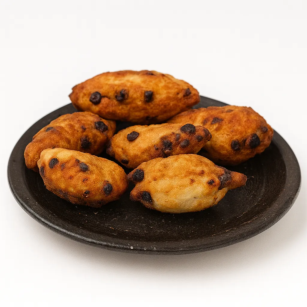 7. Carefully place the dough patties into the hot oil. Let them fry for about 2 to 3 minutes on each side or until they are golden brown and cooked through. The popping sound indicates that the berries are releasing moisture.