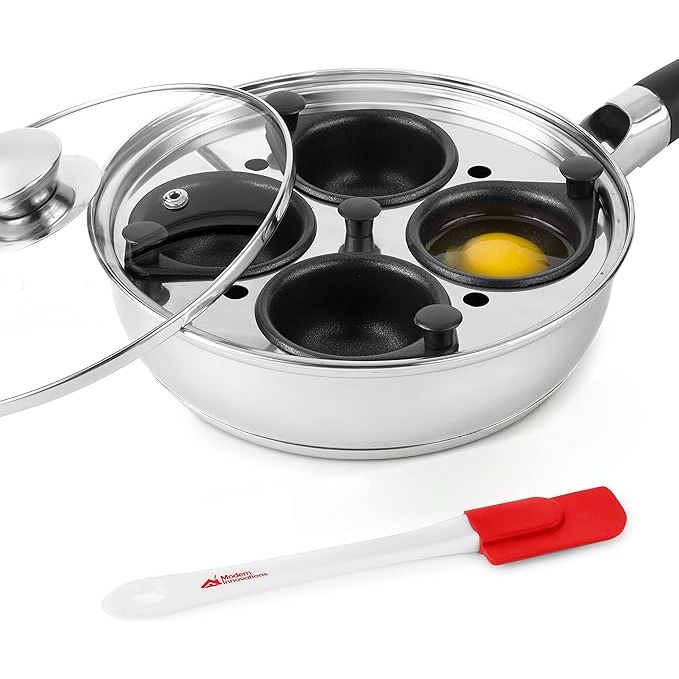 Modern Innovations Stainless Steel Nonstick Egg Poacher Pan with Silicone Spatula