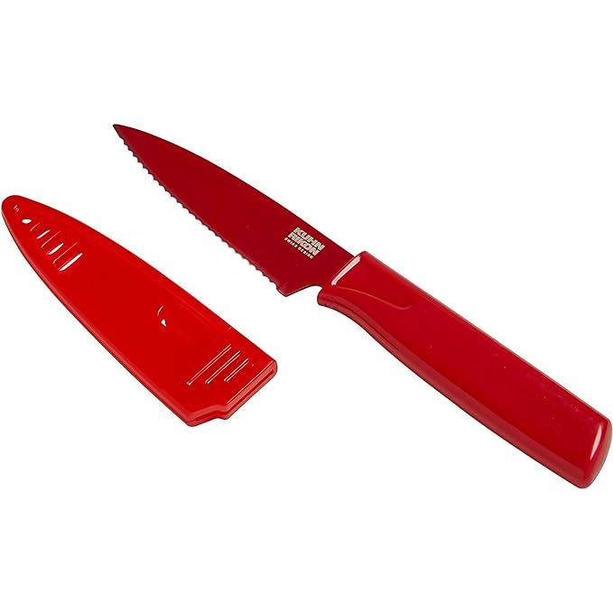 Included with the knife is a convenient safety sheath to protect the blade during storage and transport, adding an extra layer of safety when not in use. Compact and durable, this knife is ideal for everyday kitchen tasks and is a must-have for any home cook. Add this vibrant and reliable knife to your collection of kitchen tools for a seamless and efficient cutting experience. crafted by a professional copywriter and SEO expert.concurrently.
