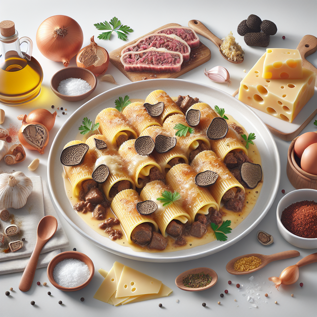 Canelons de Carn d'Olla is a sumptuous dish hailing from Andorra that features cannelloni pasta tubes filled with a rich and savory stew meat filling. The recipe highlights a fusion of Catalan and French culinary influences, typical in Andorran cuisine. To prepare this dish, pasta sheets are cooked al dente and rolled with a hearty mixture of stewed meats including beef and pork that have been finely minced and combined with cooked liver, truffles, and a blend of cheeses. The rolled pasta is smothered in a creamy béchamel sauce, topped with cheese, and baked until golden and bubbling. This warm and comforting dish is often served during special occasions and is a celebration of Andorran culture and flavors.
