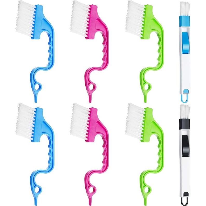 Maitys 8-Piece Handheld Groove Cleaning Brush Set for Windows and Air Conditioning Tracks - Kitchen Cleaning Tool Kit in Pink, Green, Blue, Black