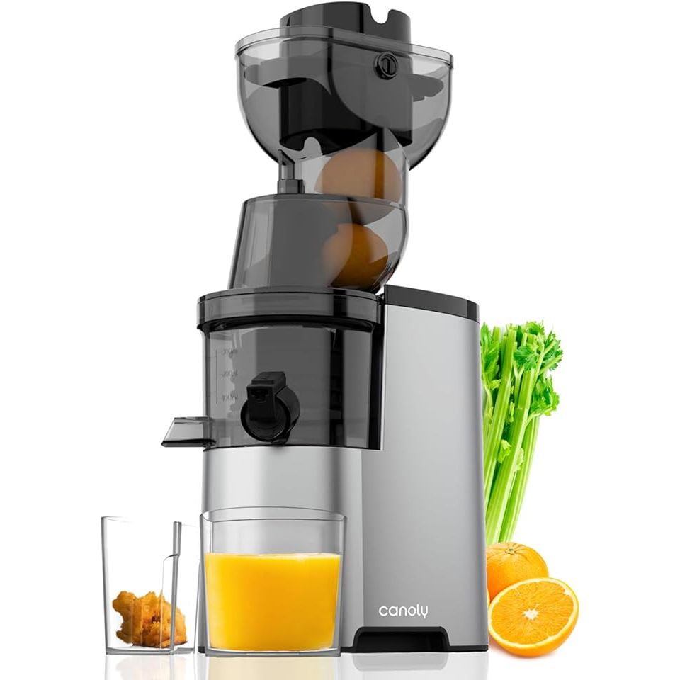 Slow Press Juicer with Wide Feed Chute, Powerful Masticating Machine for Fruits and Veggies, Includes Cleaning Brush